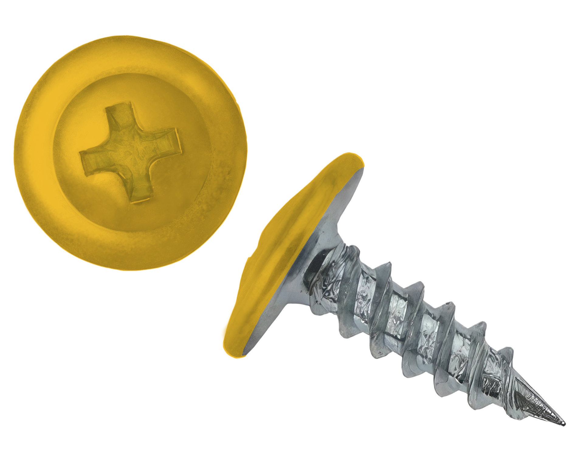 Саморез с напрессованой шайбой (ПШ) - имеют широкую плоскую головку под крестовидную биту (PH2), которая одновременно выполняет роль шайбы. Наконечник оцинкованный - острый.